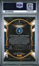 The card's key features include its status as a Rookie card, its beautiful Blue/White/Purple Cracked Ice finish, and of course, the depiction of Anthony Edwards himself, a player who has proven to be a force to be reckoned with on the NBA court.