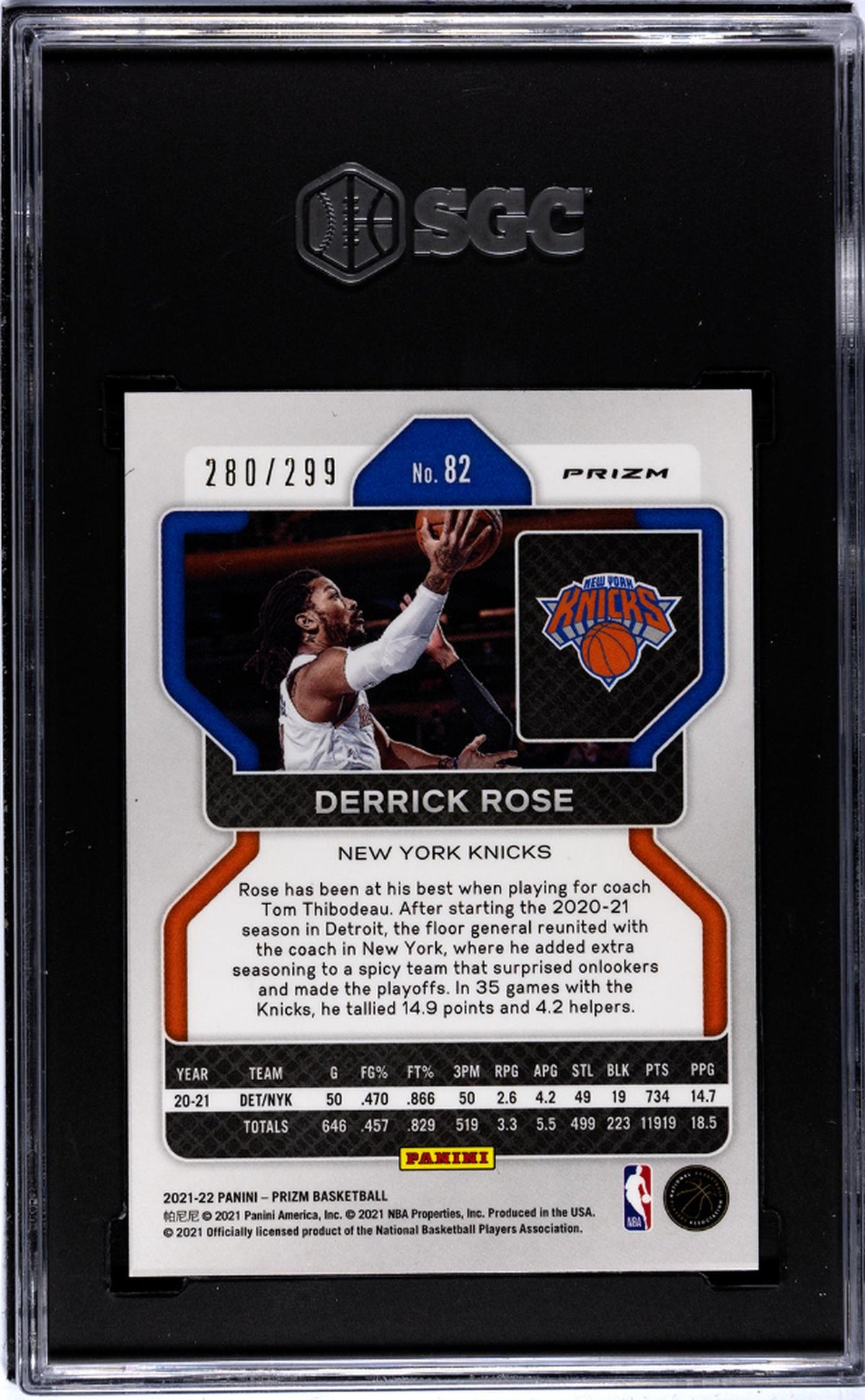 2021-22 Panini Prizm Red Prizm Derrick Rose #82 /299 SGC 9.5