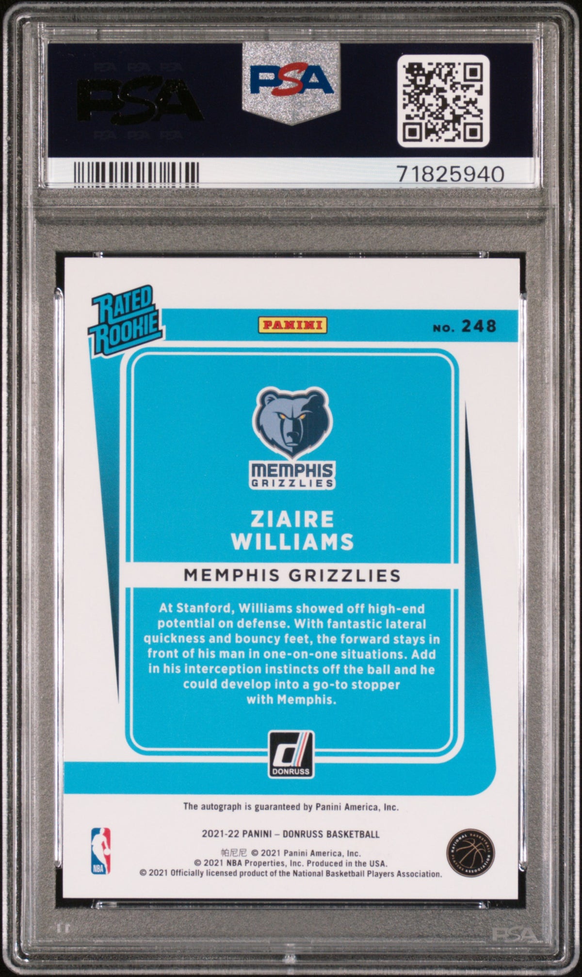 What sets this card apart is its autograph by rising Memphis Grizzlies star, Ziaire Williams himself. A promising talent in the NBA, owning this card is like having a piece of basketball history in your hands. Being a rookie card, it offers a glimpse into the beginnings of a potentially illustrious career, making it a highly desirable piece for collectors and fans alike.