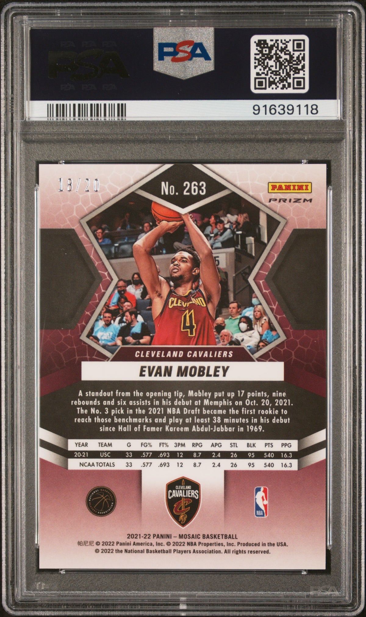 2021 Panini Mosaic Pink Fast Break Evan Mobley #263 RC NBA Debut /20 PSA 10