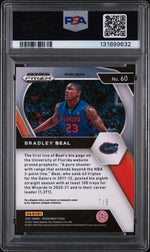 Immerse yourself in the world of basketball memorabilia with this exquisite 2021 Prizm #60 Bradley Beal Green 7/8 PSA 9 sports card. Manufactured by the renowned Panini under the Prizm brand, this card is a part of the much sought-after Prizm Draft Picks set. The card features Bradley Beal, a notable player from Florida, in all his glory. The card's appeal is magnified by its 'Choice Prizm-Green' parallel design, which is a rare find among card collectors.