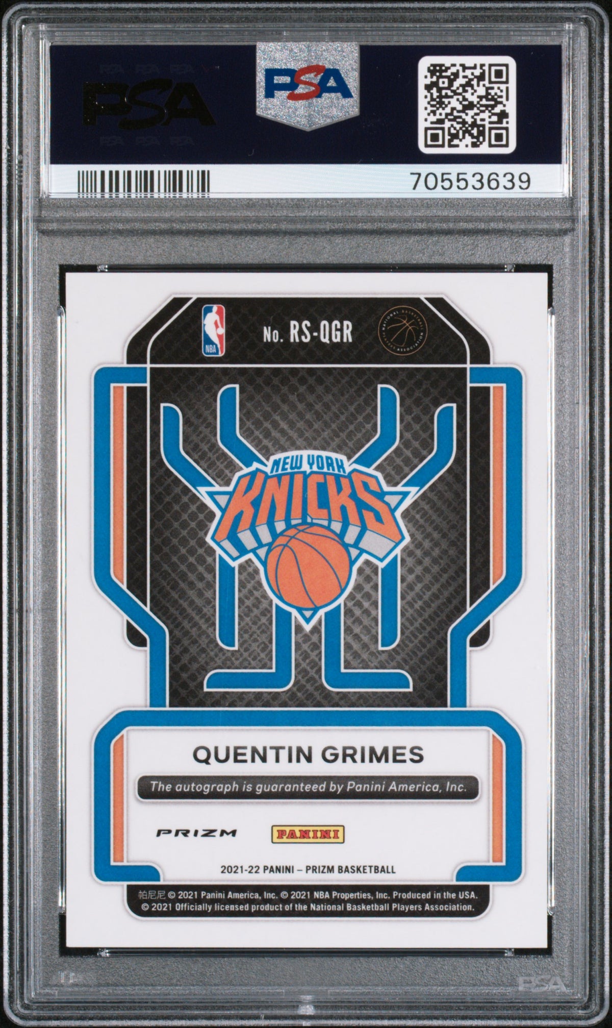 This card represents Quentin Grimes in his rookie year with the New York Knicks--an iconic moment in NBA history. It's not just a card, but a memento of Grimes' journey, capturing the spirit of the sport and the player in one compact, beautifully designed piece.