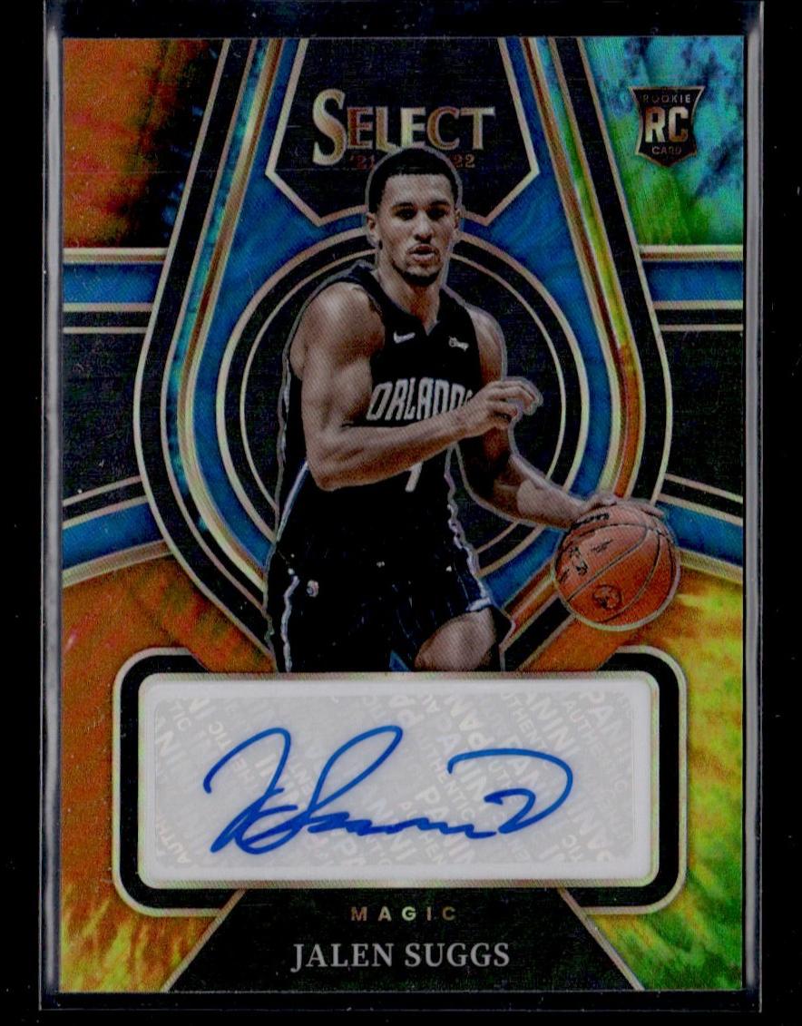 This card celebrates the skill, agility, and potential of Jalen Suggs, making it a must-have for fans of the Orlando Magic, followers of NBA, or any sports card enthusiasts. It's a tangible piece of the sport's history, capturing the essence of basketball in a unique and memorable way.