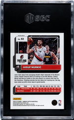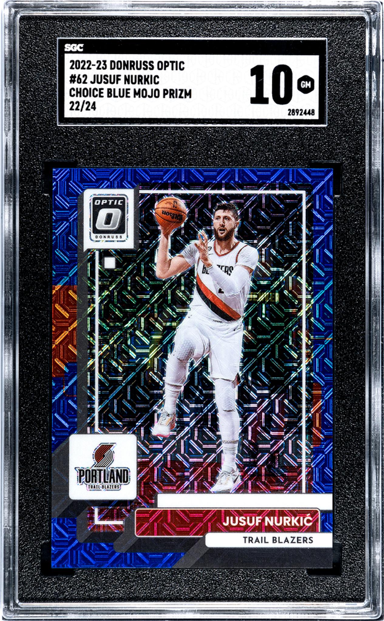 This card belongs to the 'Donruss Optic Prizm' set, a well-known series in the world of basketball card collecting. Its key features include its Gem Mint SGC 10 grade, its visually striking Blue Mojo Prizm, and the fact that it represents a star player in the form of Jusuf Nurkic.