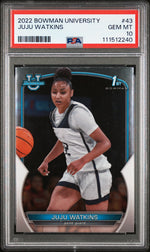 Key features of this card include its Gem Mint 10 condition, 1st Bowman status, PSA grading, and the fact that it's a rookie card from the 2022 Bowman University set. This card is a testament to JuJu Watkins' journey and potential, making it a truly captivating collectible.