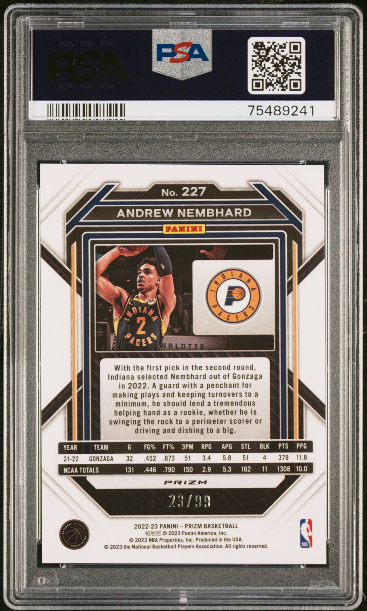 Dive into the world of basketball with this captivating 2022 Panini Prizm #227 card featuring the promising talent, Andrew Nembhard of the Indiana Pacers. A prized find for any sports collector, this card is a stunning testament to Nembhard's rookie year in the NBA.
