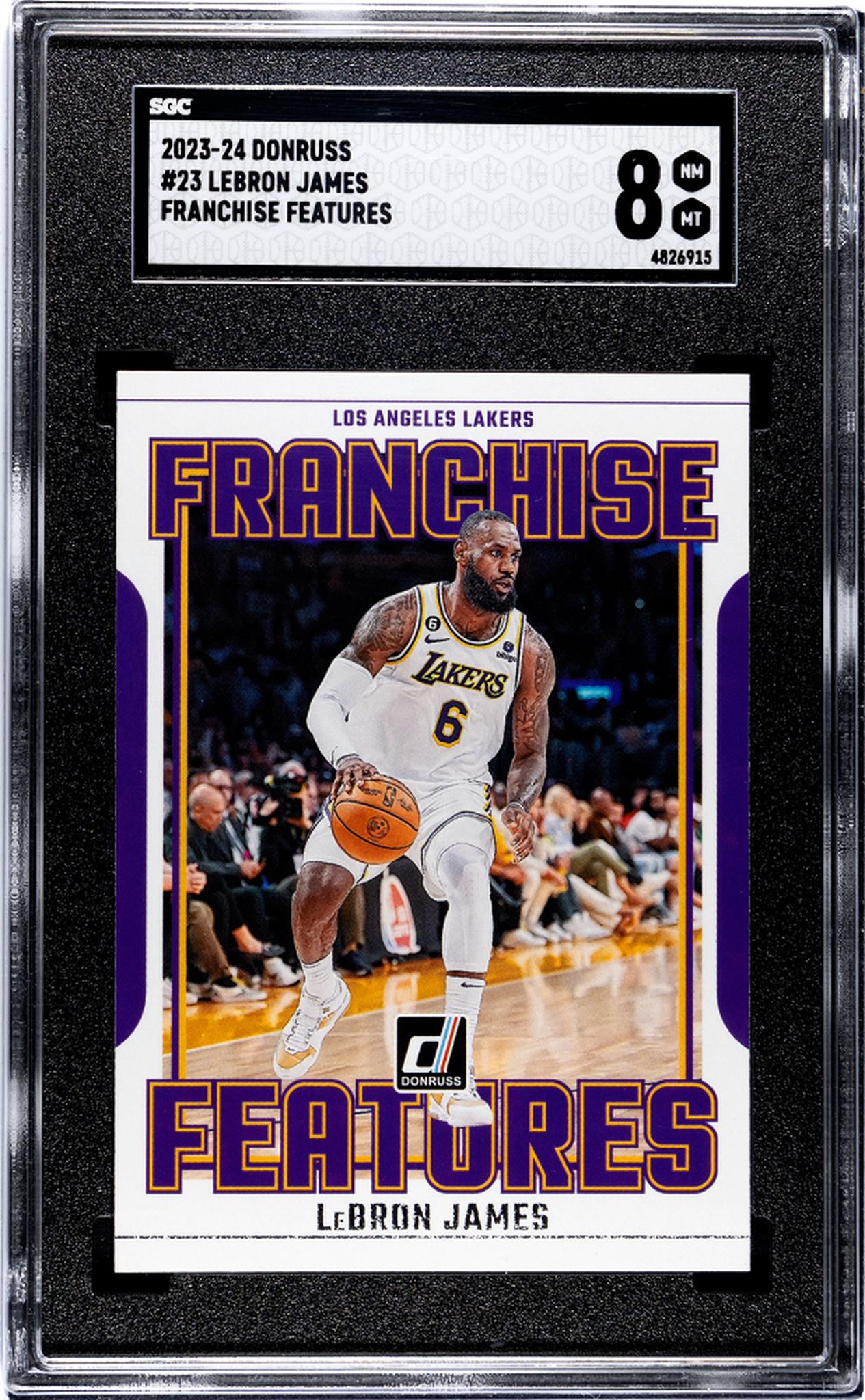 Introducing the highly sought-after 2023-24 Donruss #23 LeBron James basketball card from the illustrious 'Franchise Features' set! Manufactured by the reputable Panini brand, this card is a must-have for any serious collector or NBA enthusiast.