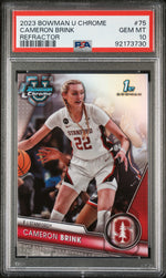 Key features of this card include its PSA 10 Gem Mint condition, its Refractor parallel status, its status as a Rookie card, and its association with the Bowman U Chrome series and Stanford player. This card is more than just a collector's item, it's a piece of sports memorabilia that pays tribute to the talent and skill of Cameron Brink. Don't miss this chance to own a piece of basketball history.