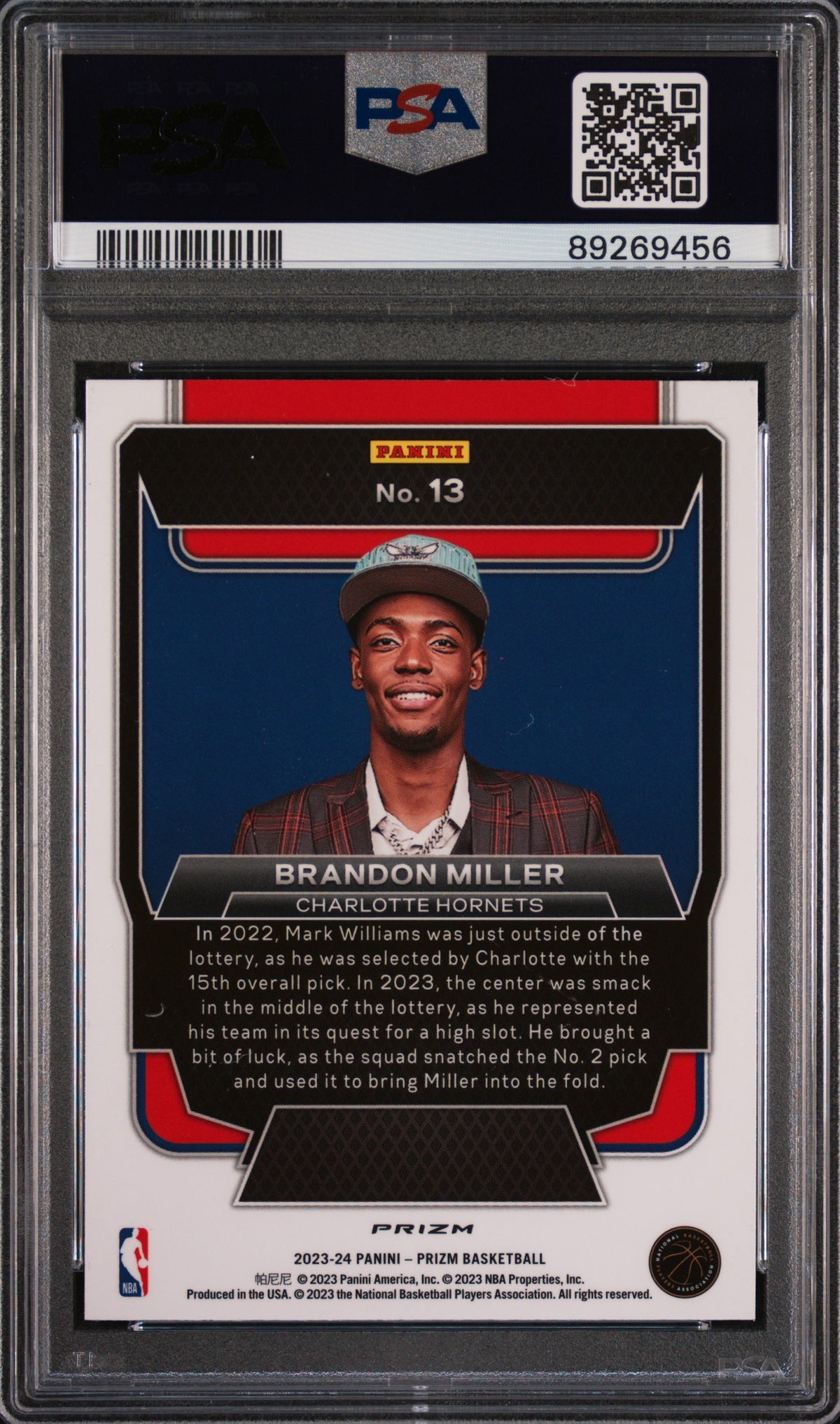 In the world of Basketball card collecting, the 2023 Panini Prizm Brandon Miller card is a shining star. Its superior grading, attractive design, and unique features make it a must-have for all collectors. Add this card to your collection and cherish the memory of Brandon Miller's rookie year in the NBA. This card is not just a piece of cardboard, but a piece of sports history that you can own.