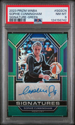 This offering is more than just a sports card. It's a celebration of basketball, a salute to the WNBA, and an homage to Sophie Cunningham's stellar career. Its key features include Sophie Cunningham's name, the 2023 Prizm label, a PSA grade of 8, NM-MT condition, a Green Signature parallel, and an autograph, making it a must-have for any serious collector or avid fan.