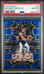 Dive into the world of sports cards with this phenomenal 2023 Panini Select Blue Disco card featuring the dynamic NBA player, Michael Porter Jr. from the Denver Nuggets. This card, part of the highly coveted 'Concourse' set, is a striking embodiment of Porter Jr.'s talent and charisma on the court.