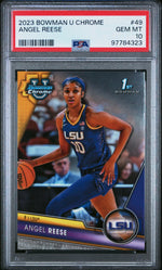 Introducing the gem of your collection, the 2023 Bowman Chrome #49 Angel Reese! This is a sports card that every collector dreams of possessing. Proudly manufactured by Topps under their esteemed Bowman brand, this card stands out as a token of excellence.
