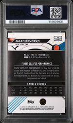 In the end, what you're getting is a piece of sports history, encapsulated in the form of this Jalen Brunson card. Its key features - the Gold Geometric parallel, PSA grading, limited availability, representation of a New York player, and association with the Topps Finest 2023 release - all contribute to making this card a truly valuable asset. This card is more than just a collectible, it's a celebration of basketball, a tribute to Jalen Brunson, and a treasure for any sports card connoisseur.