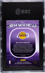 This card is not just a keepsake; it's a treasure, a rookie card from the 2024-25 Panini Hoops Skyview set. Knecht's rookie cards are highly sought after by collectors, making this a must-have asset. The card, however, does not include any autograph or memorabilia, keeping it pristine and unadulterated.