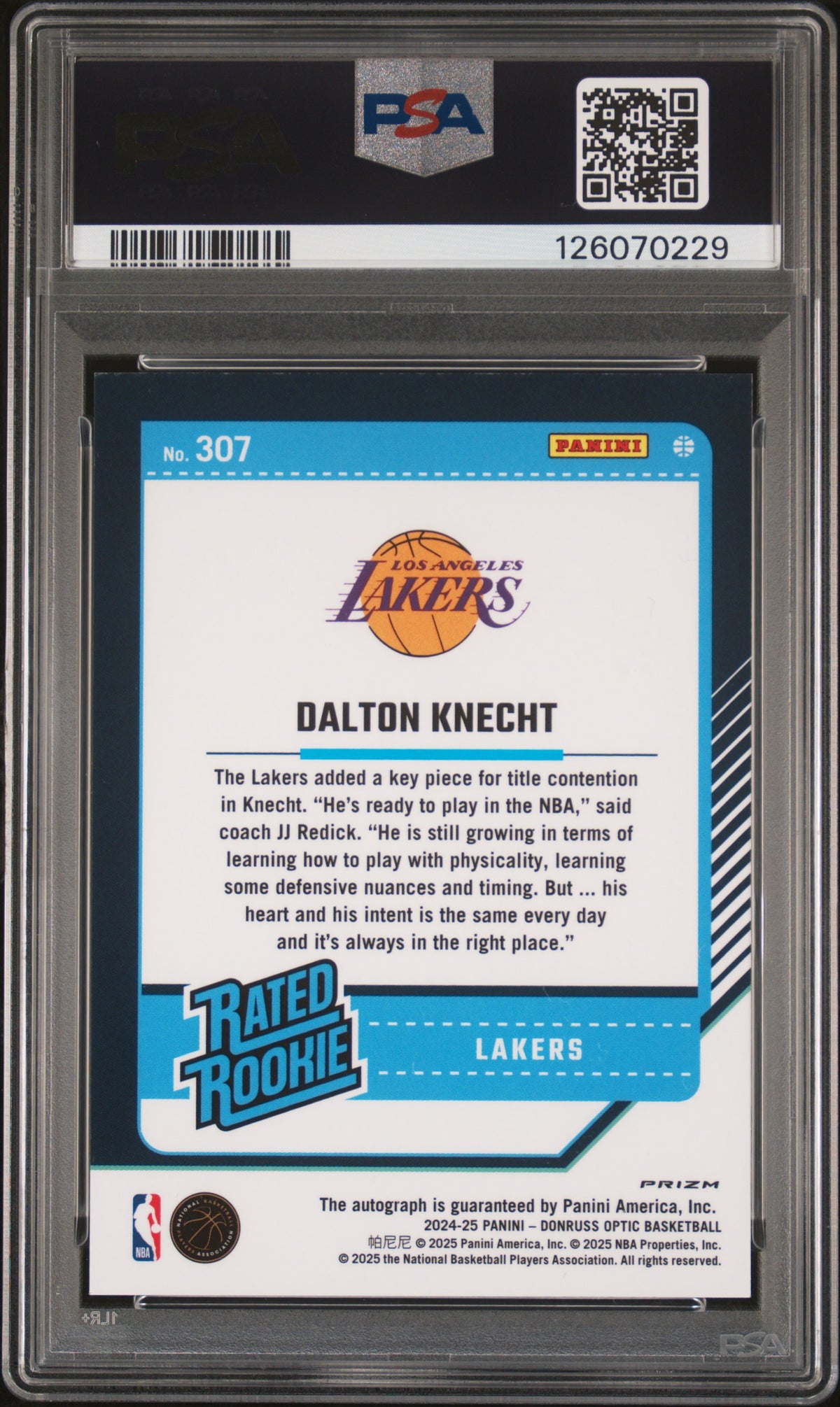 In summary, this 2024 Donruss Optic 307 Dalton Knecht card is more than just a card; it's a treasure trove of memories and a tangible piece of sports history. Its autographed status, mint condition, and Holo Parallel finish make it a highly sought-after card for any collector. Add this to your collection and own a piece of the legacy of the promising player Dalton Knecht.