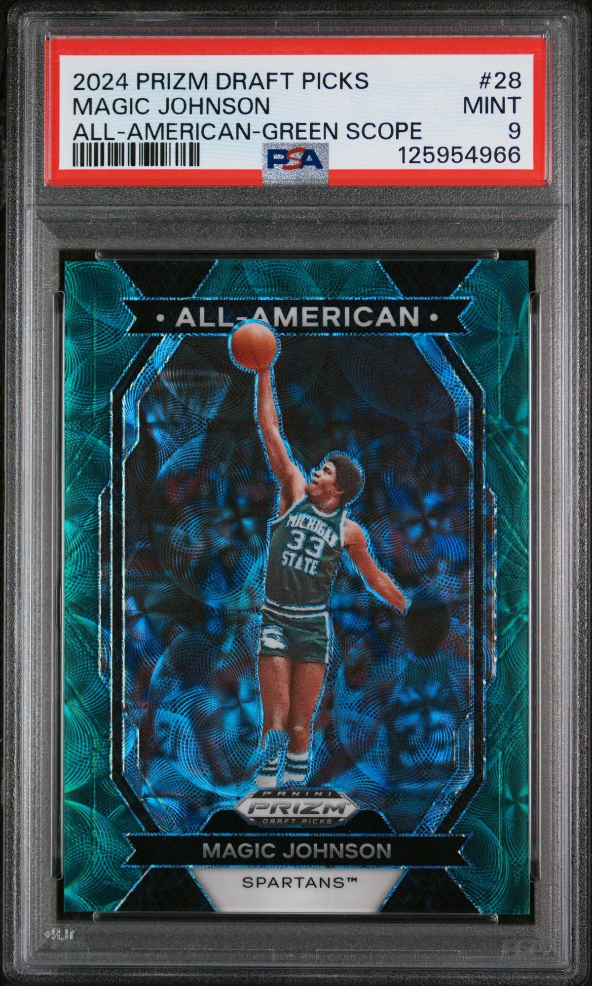 2024 Panini Prizm Draft Picks All-American Green Scope Magic Johnson #28 /8 PSA 9