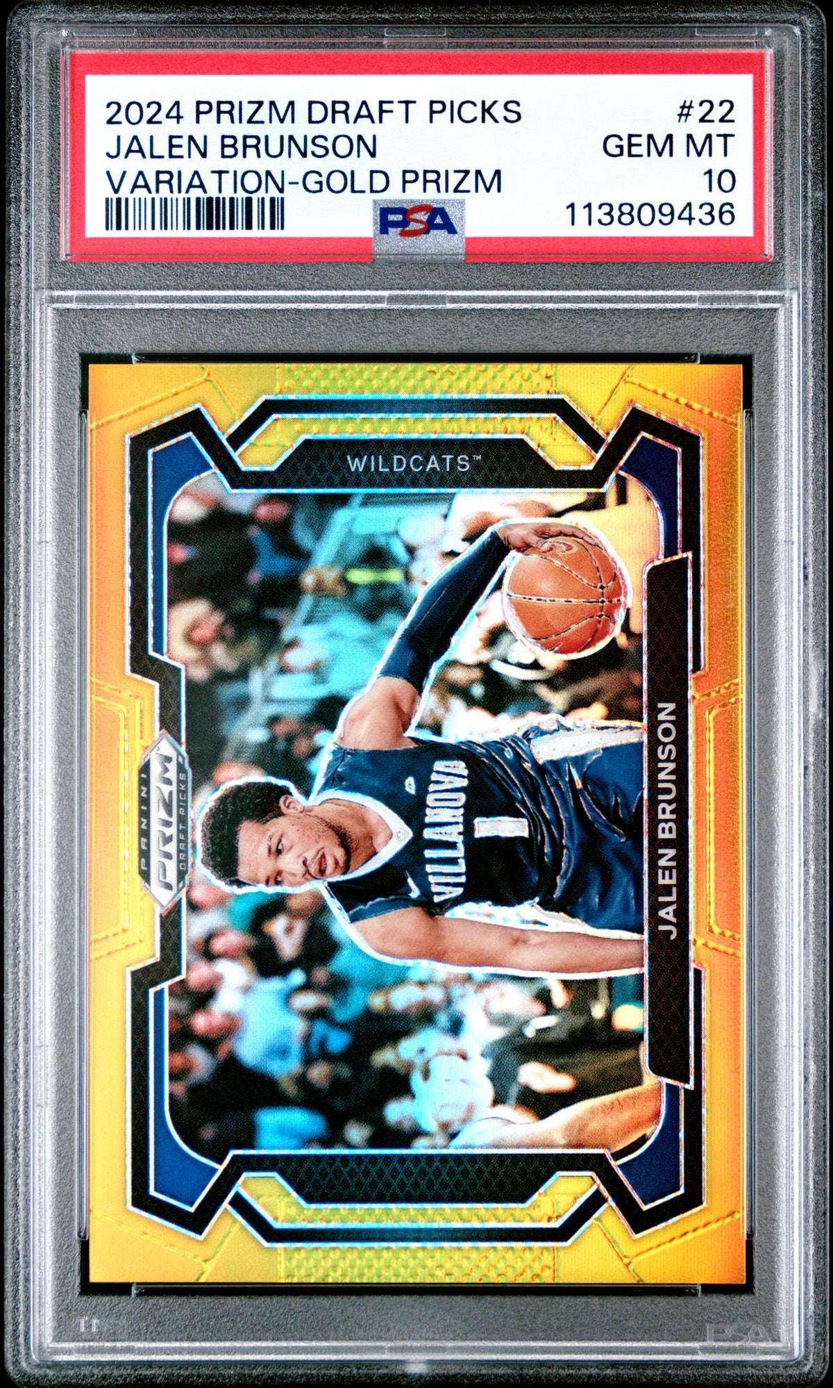 In the realm of basketball card collecting, this Jalen Brunson card is a gem. Its rarity, association with a stellar player, and top-notch grading make it a coveted addition to any collection. Its key features include the Gold Prizm parallel, PSA Gem Mint 10 grading, Serial Numbered 01/10, association with Villanova Wildcats, and its part of the rare 2024 Prizm Draft Picks set.