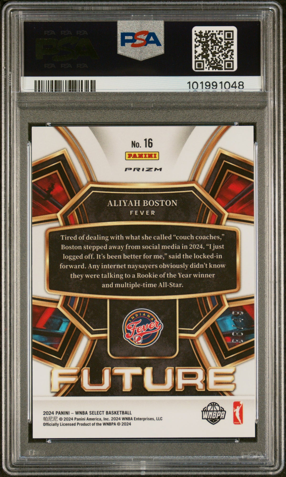 In the world of basketball card collecting, condition is paramount, and this card with a PSA 10 grading, the highest possible grade, is the epitome of perfection. It's a card collector's dream and a testament to the exceptional journey of Aliyah Boston.