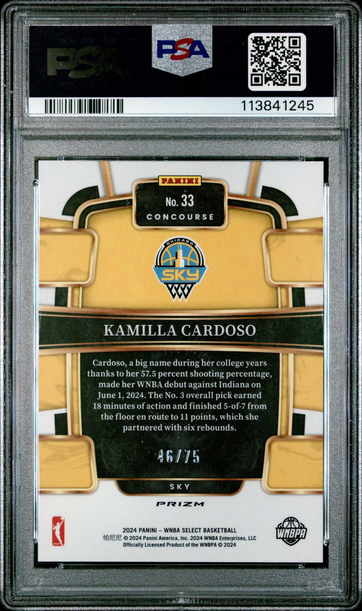 This is more than just a sports card; it is a piece of basketball history and a tribute to Kamilla Cardoso's rookie year. It's an alluring collectible that captures a moment in sports history, making it a perfect gift for fans or a prized possession for serious collectors. Don't miss the opportunity to own this exquisite piece of memorabilia. This 2024 Select #33 Kamilla Cardoso card is truly a collector's dream.