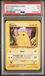Introducing the iconic 1999 Pokemon Pikachu #58 card from the renowned Pokemon Game Base Set! Brought to you by esteemed manufacturer, Wizards of the Coast, this delightful card features the beloved Pikachu, whose charm has transcended generations. This particular card is a Yellow Cheeks variant, a special detail that adds to its appeal and collectability.