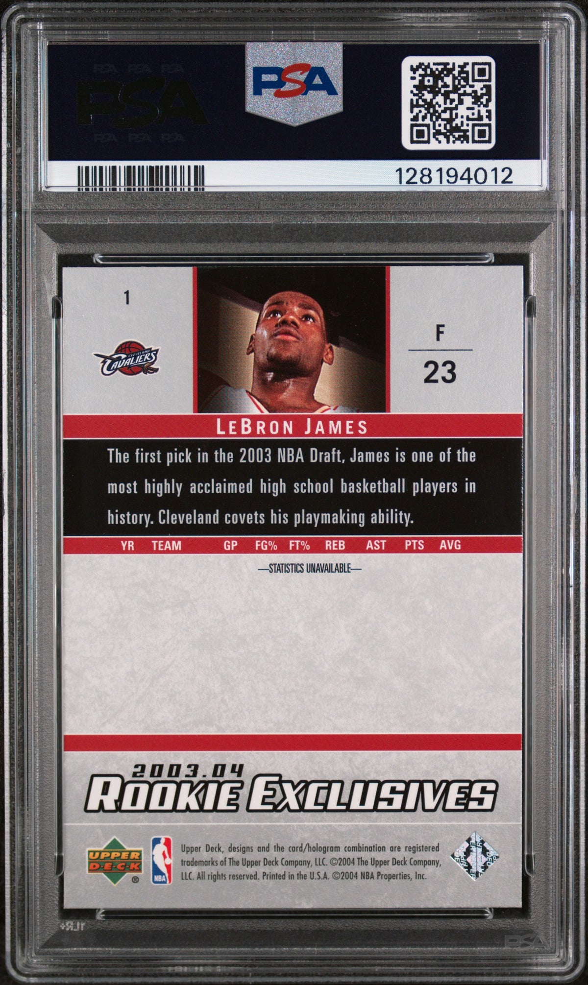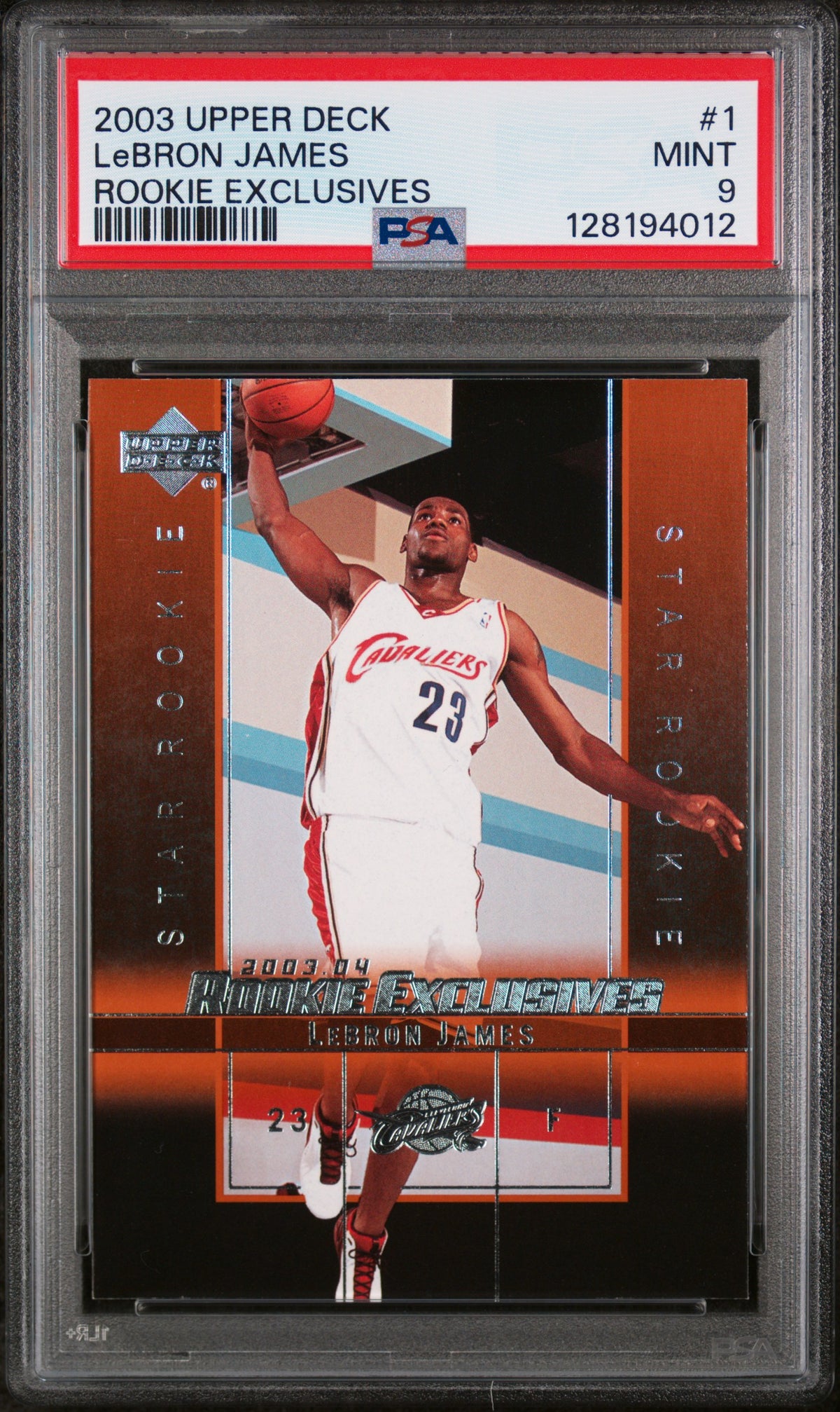 Key Features: LeBron James rookie card, Upper Deck, Mint PSA 9, Rookie Exclusives, Star Rookie insert, Cleveland Cavaliers, NBA.