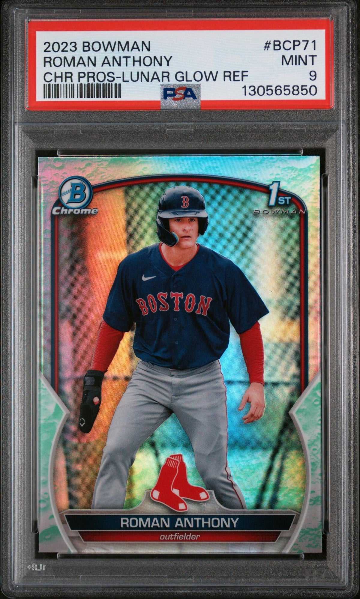 Dive into the world of sports memorabilia with this exceptional 2023 Bowman Chrome #BCP71 Roman Anthony PSA 9 baseball card. Manufactured by the renowned Topps brand, this card is part of the sought-after 'Bowman Chrome Prospects' set, a collection revered by sports card collectors worldwide.