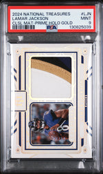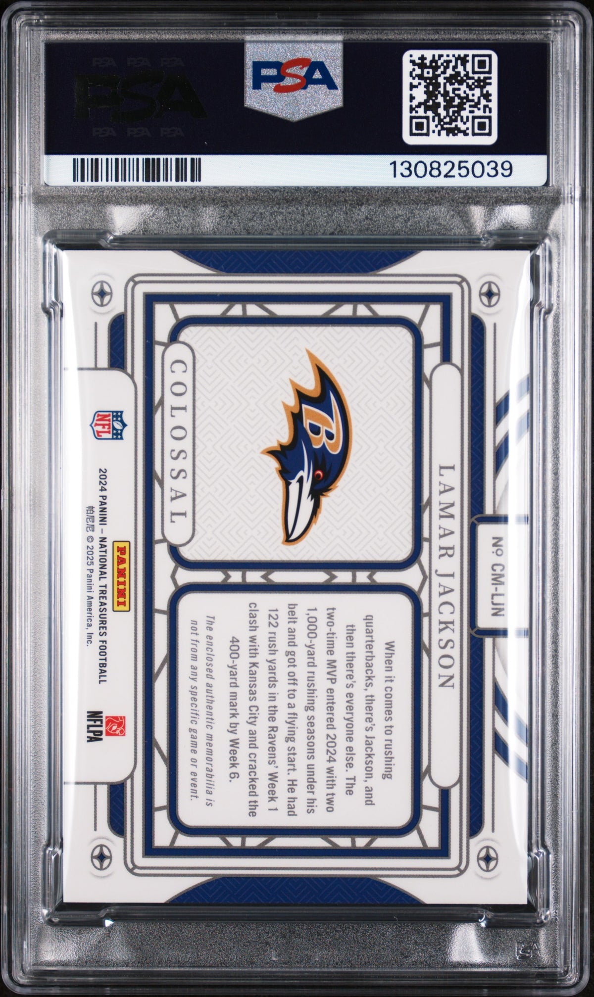 In conclusion, this 2024 Nat Treas CM-LJN Lamar Jackson card is a fantastic addition to any sports card collection. Its exclusive features, player significance, and high grading make it a must-have for enthusiasts and fans alike. Don't miss the chance to own this piece of sports history!