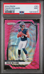 This 2024 Prizm #301 Caleb Williams Pink card is more than a piece of cardboard; it's a ticket to relive the electrifying moments of NFL games. It doesn't come with any memorabilia, but the joy of owning a card from a player like Williams, in his rookie year, is a memorable experience in itself.