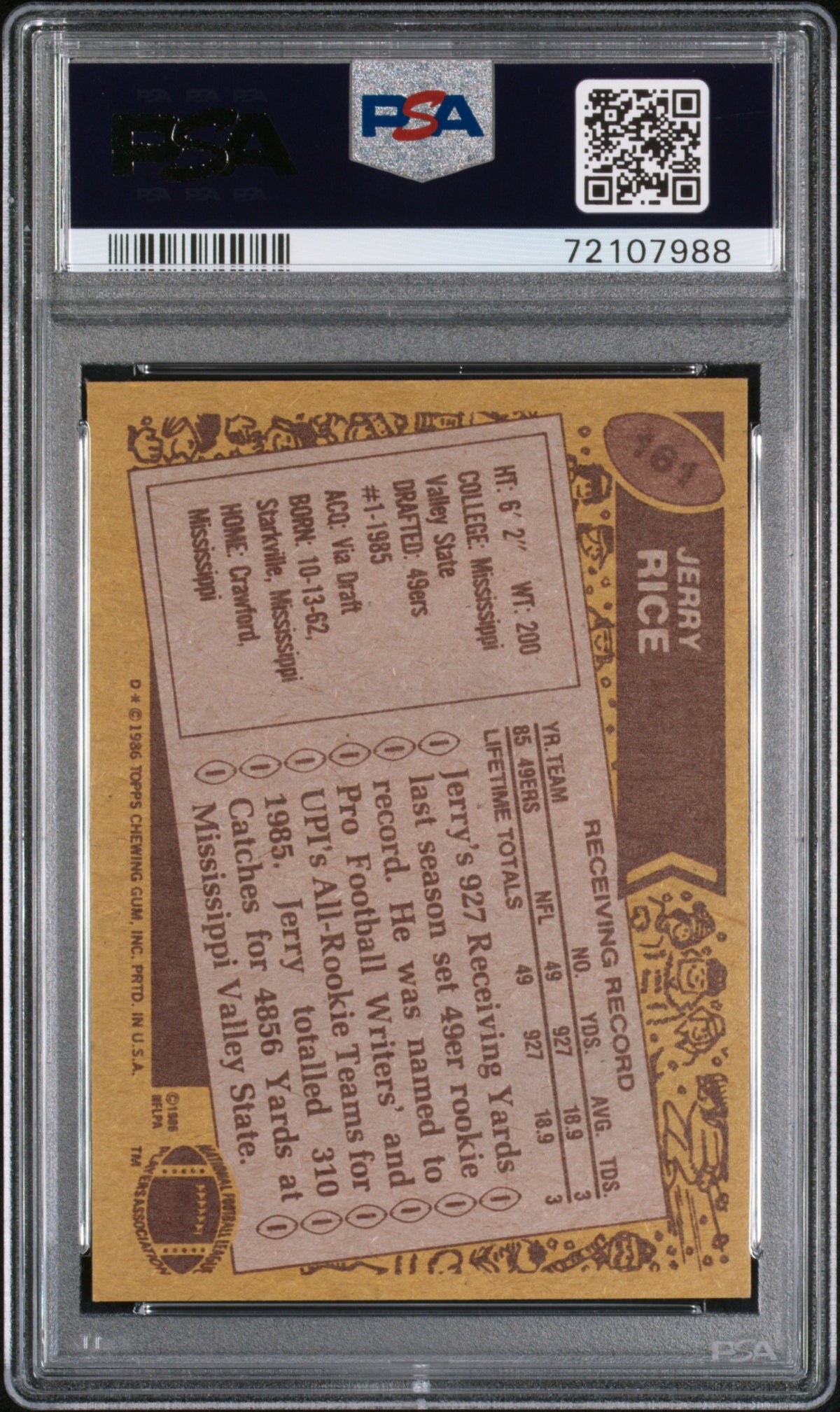 In the realm of sports cards, the 1986 Topps #161 Jerry Rice card is a true gem. It encapsulates the beginning of an illustrious career, making it a unique and valuable addition to any collection. Whether you're a seasoned collector or new to the hobby, this card is a fantastic piece to own, appreciate, and pass down through generations.