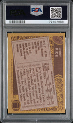 This card does not include any memorabilia, yet it stands strong as a standalone testament to Rice's illustrious career. The fact that it features him during his rookie year only adds to its charm and value.