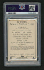 Note: The card's category is Football and it falls under the 2006 Turkey Red Relics set. The key features of this card include the Red parallel, a game-worn jersey, its inclusion in the Prominent Football Players insert, its PSA 9 Mint grade, its association with the San Francisco 49ers, and of course, the legendary Frank Gore.