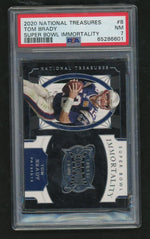 This 2020 National Treasures #8 Tom Brady card is a must-have for any avid collector, football enthusiast, or Patriots fan. Its key features include the representation of Tom Brady, its inclusion in the National Treasures collection, the Super Bowl Immortality insert set, and the exceptional PSA grading. This card is a testament to the beauty of football, the thrill of the Super Bowl, and the immortal talent of Tom Brady.