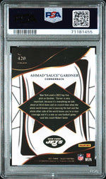 The card features Ahmad Gardner, the dynamic player of the New York Jets, captured in a moment of action. This is not just any card, this is a PSA graded card with a perfect score of 10 - a Gem Mint grade that attests to its pristine condition. With this grade, you can be confident that this card is free from any flaws, showing no signs of wear and tear.