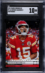 Elevate your sports card collection with this remarkable 2022 Panini Chronicles PH-18 Patrick Mahomes II card. This card is a fantastic representation of one of the NFL's top-tier talents, the extraordinary quarterback of the Chiefs, Patrick Mahomes II. Manufactured by the renowned Panini under the Chronicles brand, this card is from the Photogenic insert set, celebrating the picturesque moments of the game.