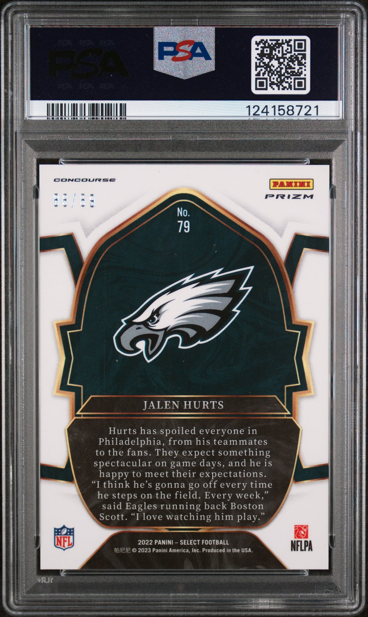 Moreover, this card features Jalen Hurts, a rising star in the NFL, whose on-field prowess and potential make this card a potential future gem. An item of this caliber doesn't just celebrate the player and the sport; it's a testament to the art of card collecting itself.