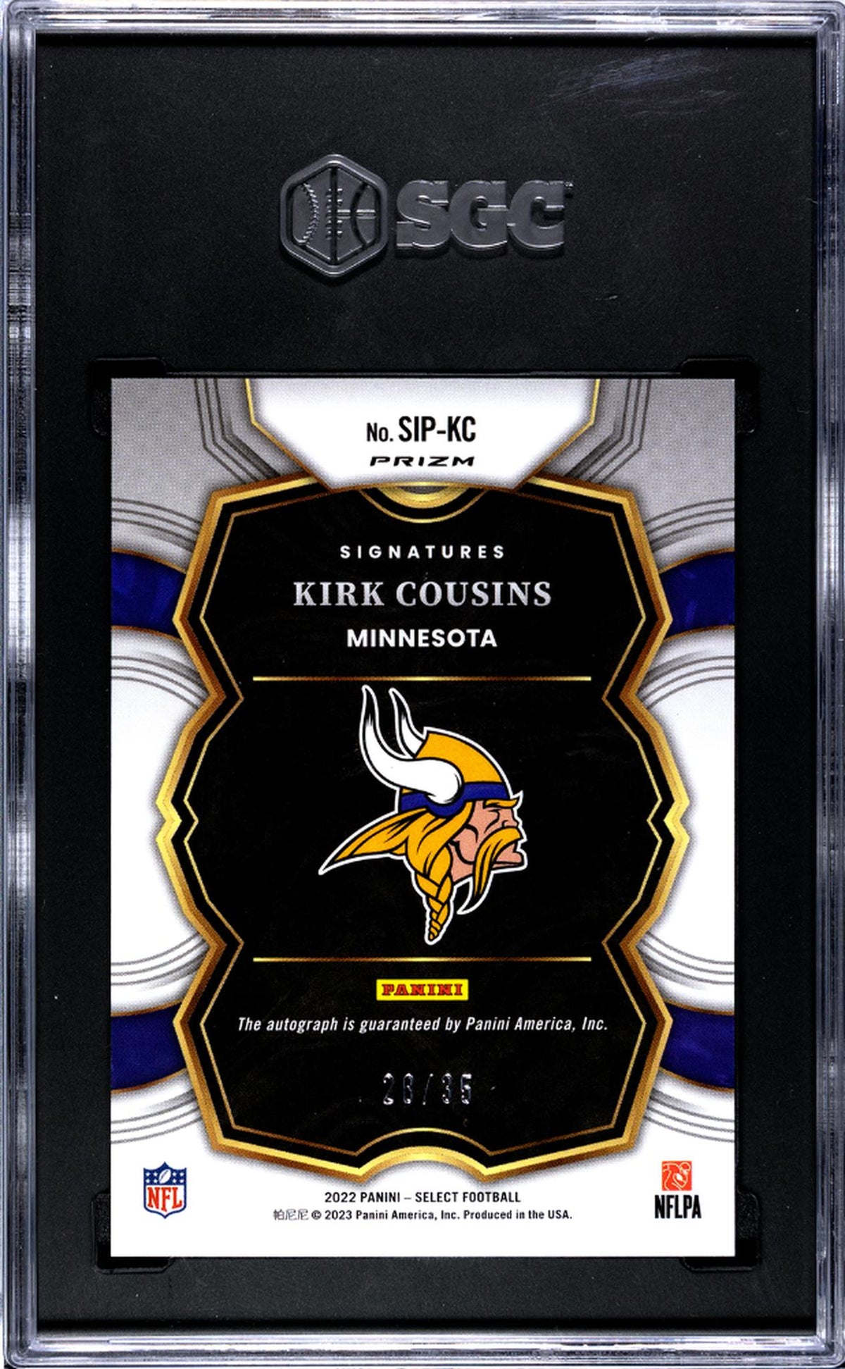 Whether you're a die-hard fan of the Minnesota Vikings, an ardent follower of Kirk Cousins, or a passionate card collector, this 2022 Panini Select SIP-KC Kirk Cousins card is an exquisite addition to your collection. Its rarity, quality, and aesthetic appeal make it an undeniable treasure in the world of football card collecting.