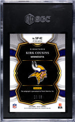 Adding to its allure is the player's autograph, a rare Kirk Cousins signature that solidifies its authenticity and appeal. The card is professionally graded by SGC and holds an impressive grade of 9.5, denoting a condition of MT+ - near pristine quality that's hard to come by.