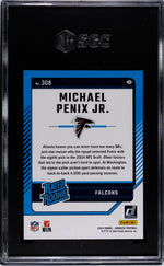 Celebrate the NFL and one of its rising stars with this striking and potentially valuable collector's item. This 2024 Donruss #308 Michael Penix Jr. Rated Rookie Card is more than just a card; it's a piece of sports history waiting for its place in your collection. Be sure not to miss out on this incredible piece of memorabilia!