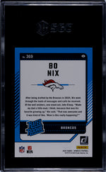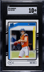 This is a genuine rookie card, marking the beginning of Bo Nix's professional journey with the Denver Broncos in the NFL. The card has been professionally graded by the renowned SGC grading company and has achieved a perfect numeric grade of '10'. The condition is described as 'Gem Mint', indicating that it is in pristine condition. This card is a perfect addition to any sports card collection or a fantastic gift for any Denver Broncos or Bo Nix fan.