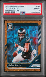 This 2024 Donruss Optic Jalen Hurts card doesn't merely represent the player or the game; it epitomizes the thrill, the passion, and the glory of NFL. Whether you're an avid collector, a die-hard Eagles fan, or simply someone who appreciates the fine art of sports, this card is a magnificent addition to any collection.