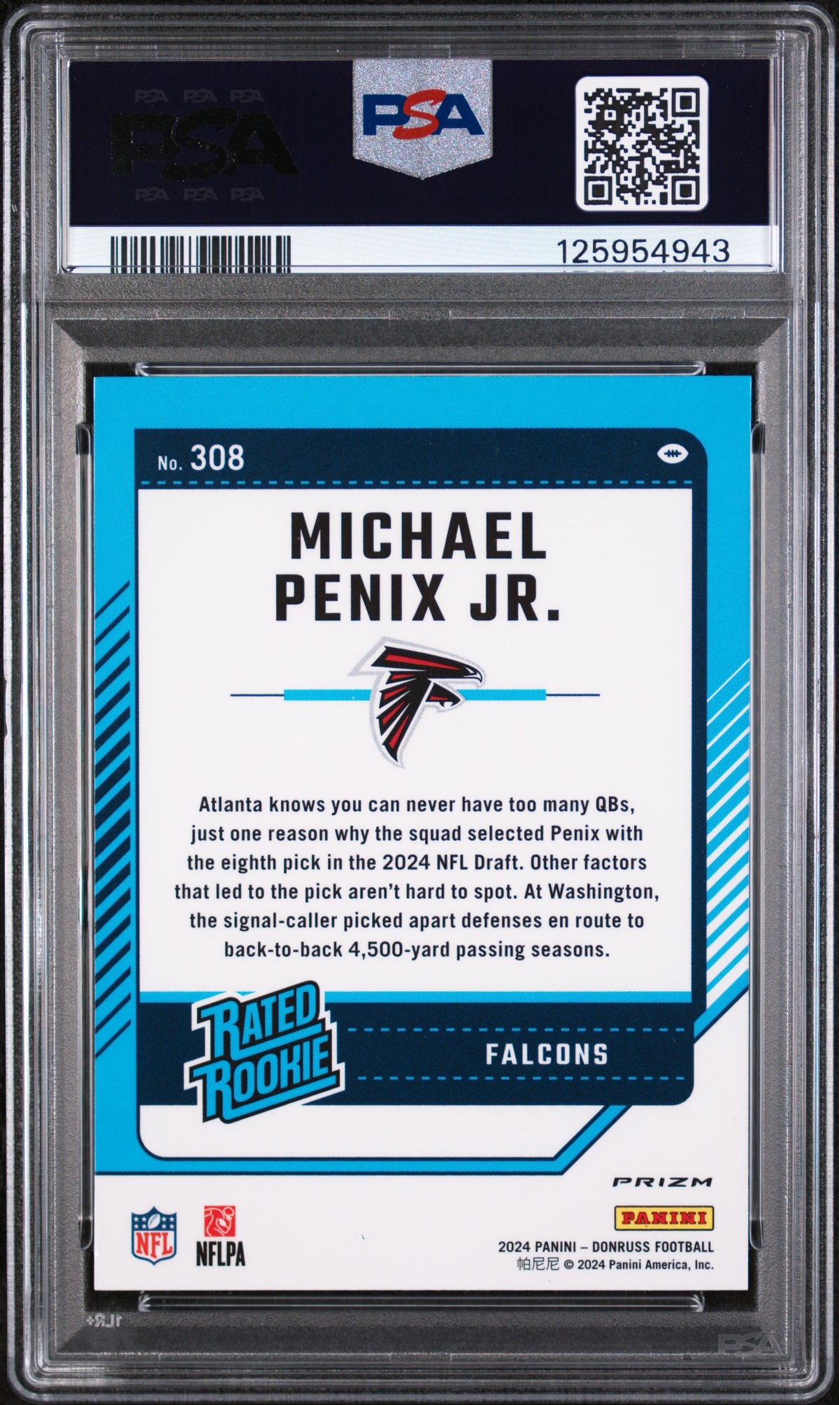 But that's not all! This card is professionally graded by PSA, the most reputable name in the card grading industry. With a Gem Mint 10 grade, the highest grade possible, this card is in impeccable condition, preserving the vibrancy and detail of Penix's image.