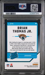 Feast your eyes on this stunning 2024 Donruss Optic #214 Brian Thomas Jr. sports card! Manufactured meticulously by Panini, this gem belongs to the illustrious 'Donruss Optic' brand, synonymous with quality and collectability among card enthusiasts.