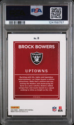 In summary, this 2024 Donruss Optic #8 Brock Bowers Prizm card is a treasure trove of standout features: a Rookie Card, Prizm parallel, PSA graded, Uptowns insert, and the promising Brock Bowers, all in NM-MT condition. Invest in a piece of sporting history with this fantastic card; it will undoubtedly be a star addition to your collection.