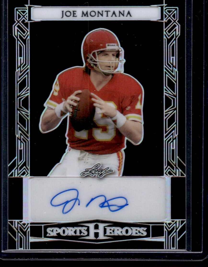 In summary, this Joe Montana autographed card from the Leaf Sports Heroes series is a rare collection piece. With its limited serial number and the prestigious autograph, it's a card that embodies the thrill of the game and the spirit of one of its greatest players. Don't miss this chance to own a piece of football history.