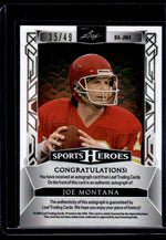 Behold the sports card of a lifetime - the 2024 Leaf Sports Heroes BA-JM4 featuring the signature of none other than Football legend, Joe Montana. This card is a treasure trove for avid collectors, with its limited availability highlighted by its serial number 35/49. An exclusive piece from the Sports Heroes Leaf 2024 set, this card holds a unique charm that is hard to resist.