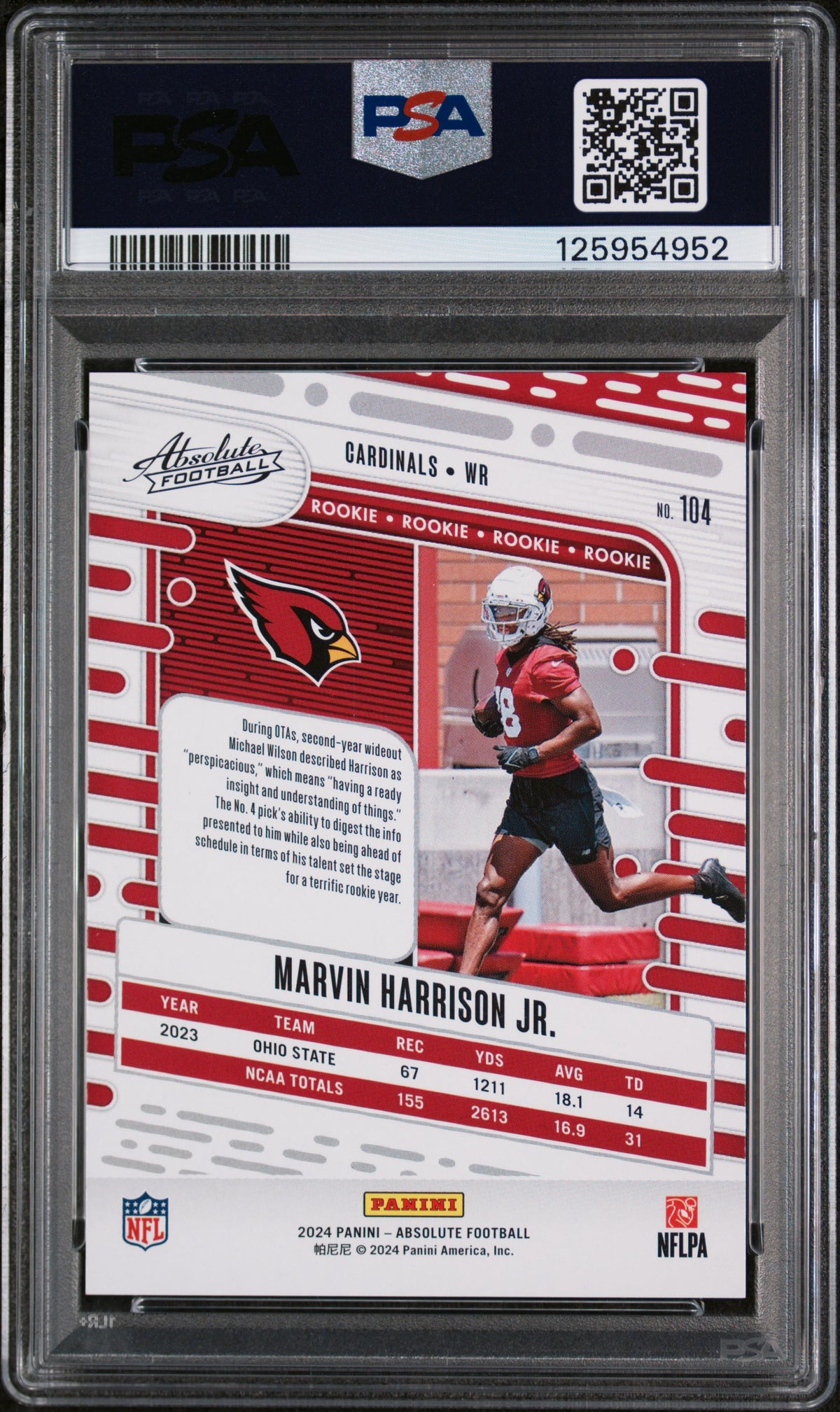 What's more, this card celebrates Marvin Harrison Jr.'s rookie year with the Cardinals, marking the beginnings of a promising career in the NFL. It's a piece of sports history that every enthusiast would want to own.