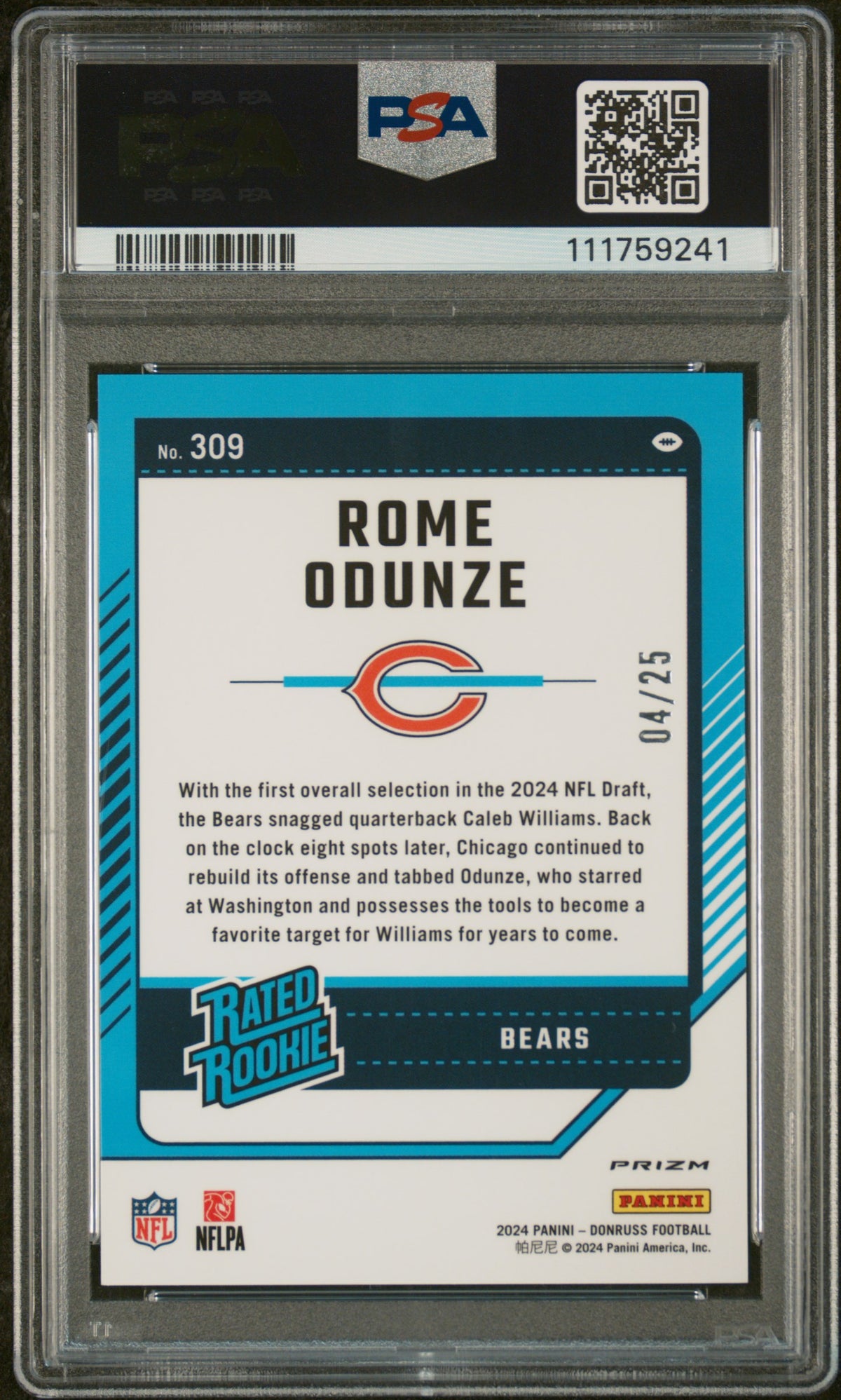 2024 Panini Donruss Optic Preview-Green Pandora Rome Odunze #309 /25 PSA 10