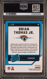 Dive into the exhilarating world of NFL with this stunning sports card featuring the rising star, Brian Thomas Jr., from the Jacksonville Jaguars. Manufactured by the renowned Panini, this card belongs to the esteemed Donruss brand and is from the much sought-after 2024 Optic Preview Set. This card, numbered 313, is a true collector's gem.