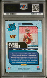 Add this valuable piece to your collection and relish the classic aesthetic of the Rated Rookies Retro set. This Jayden Daniels card is not just a collectible, but a tribute to the exhilarating world of football. Its key features include an NFL rookie card, a Rated Rookies Retro insert, a PSA Mint 9 rating, affiliation to Washington Commanders, and the iconic Donruss 2024 design.
