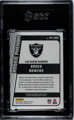 This card celebrates Brock Bowers, a dynamic player from the Las Vegas Raiders, making it a prized possession for fans and card enthusiasts alike. Adding to its appeal, it's a rookie card, an essential category for collectors.
